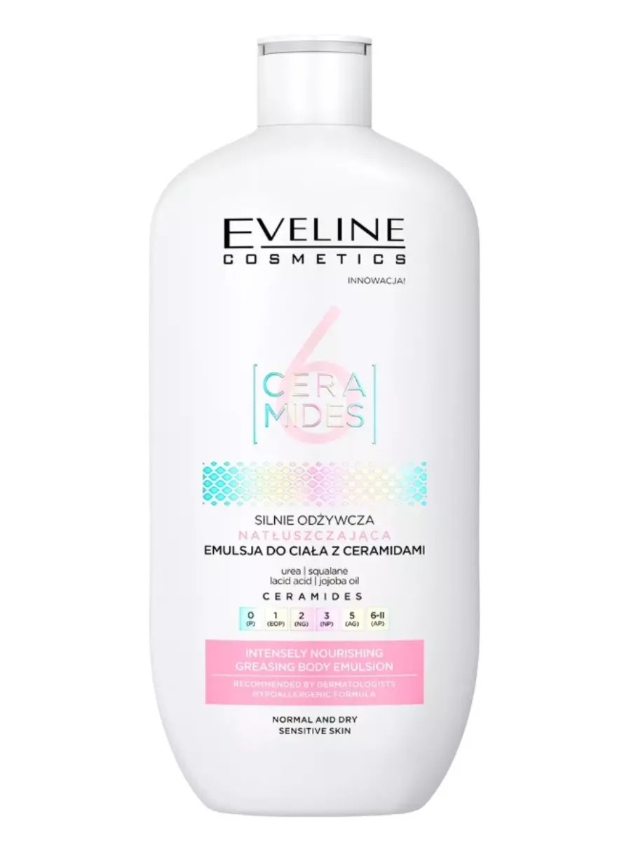 6 CERAMIDES Intensively nourishing, rich body emulsion with ceramides for normal, dry, and sensitive skin is hypoallergenic and designed for skin in need of intensive nourishment and regeneration.