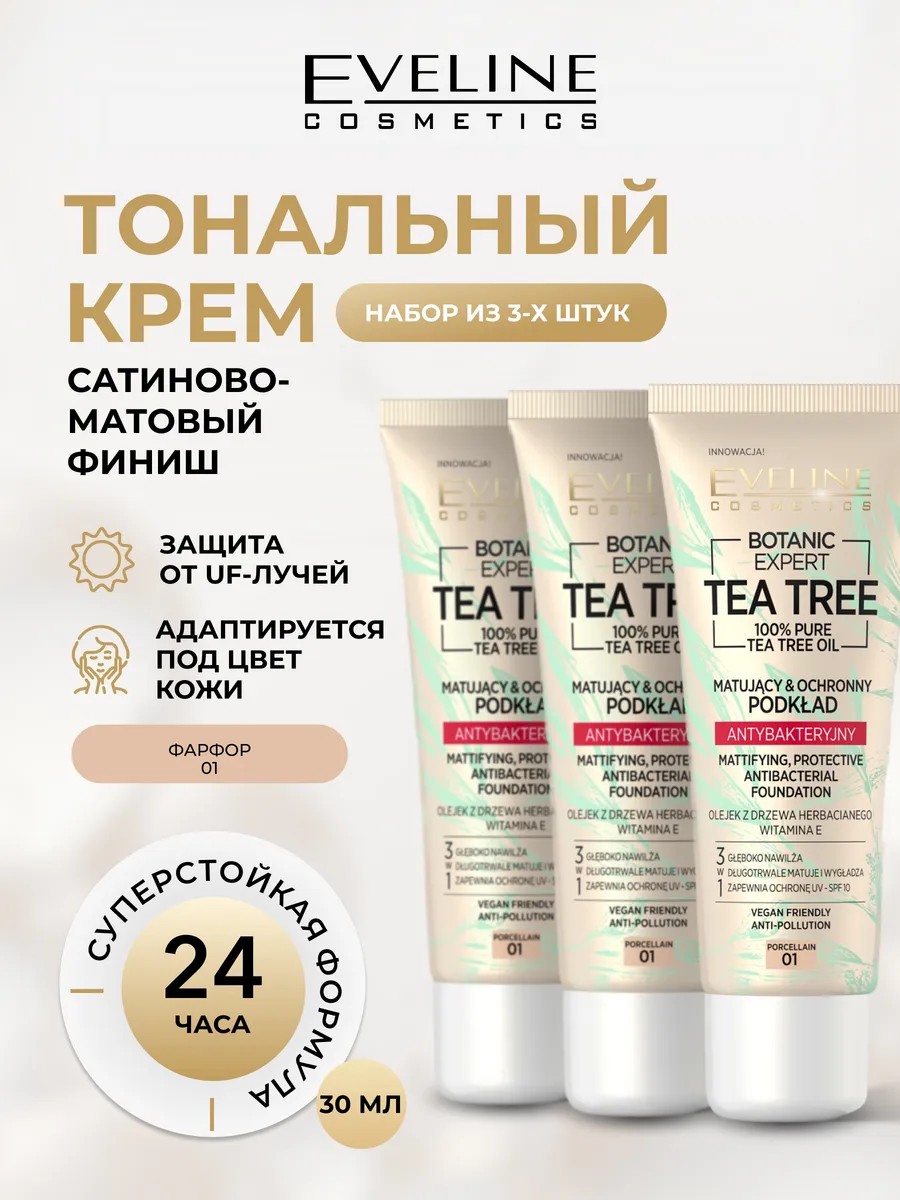 EVELINE Тональный крем Botanic Expert матирующий набор (3 шт) 01 тон PORCELAIN