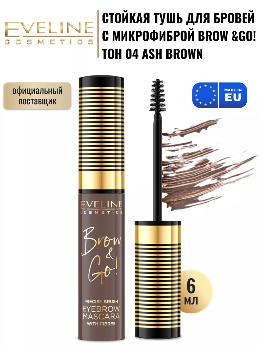 EVELINE Тушь для бровей BROW&GO! с микрофиброй Ash brown 04