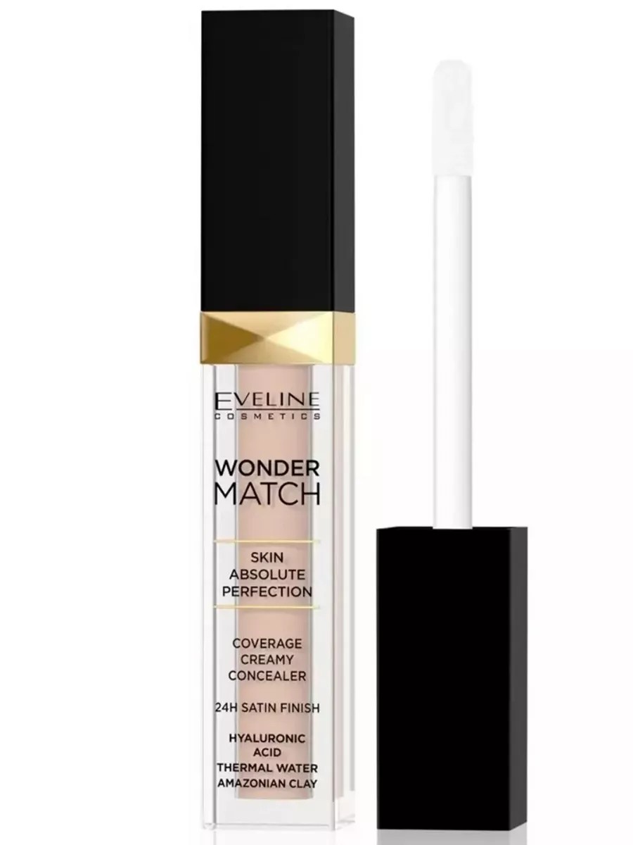 Eveline Wonder Match 035 Beige Creamy Concealer with hyaluronic acid, thermal water, and Amazonian clay perfectly conceals skin imperfections, smoothes fine lines, and provides 12-hour hydration. The unique formula contains active ingredients that effectively care for the skin and protect its microbiome. With hyaluronic acid, the product intensely moisturizes and nourishes the skin. Thermal water has a pronounced antioxidant effect, reduces redness, and normalizes pH. The concealer is enriched with a complex of anti-aging ingredients, which helps conceal minor skin imperfections, expression lines, and wrinkles.