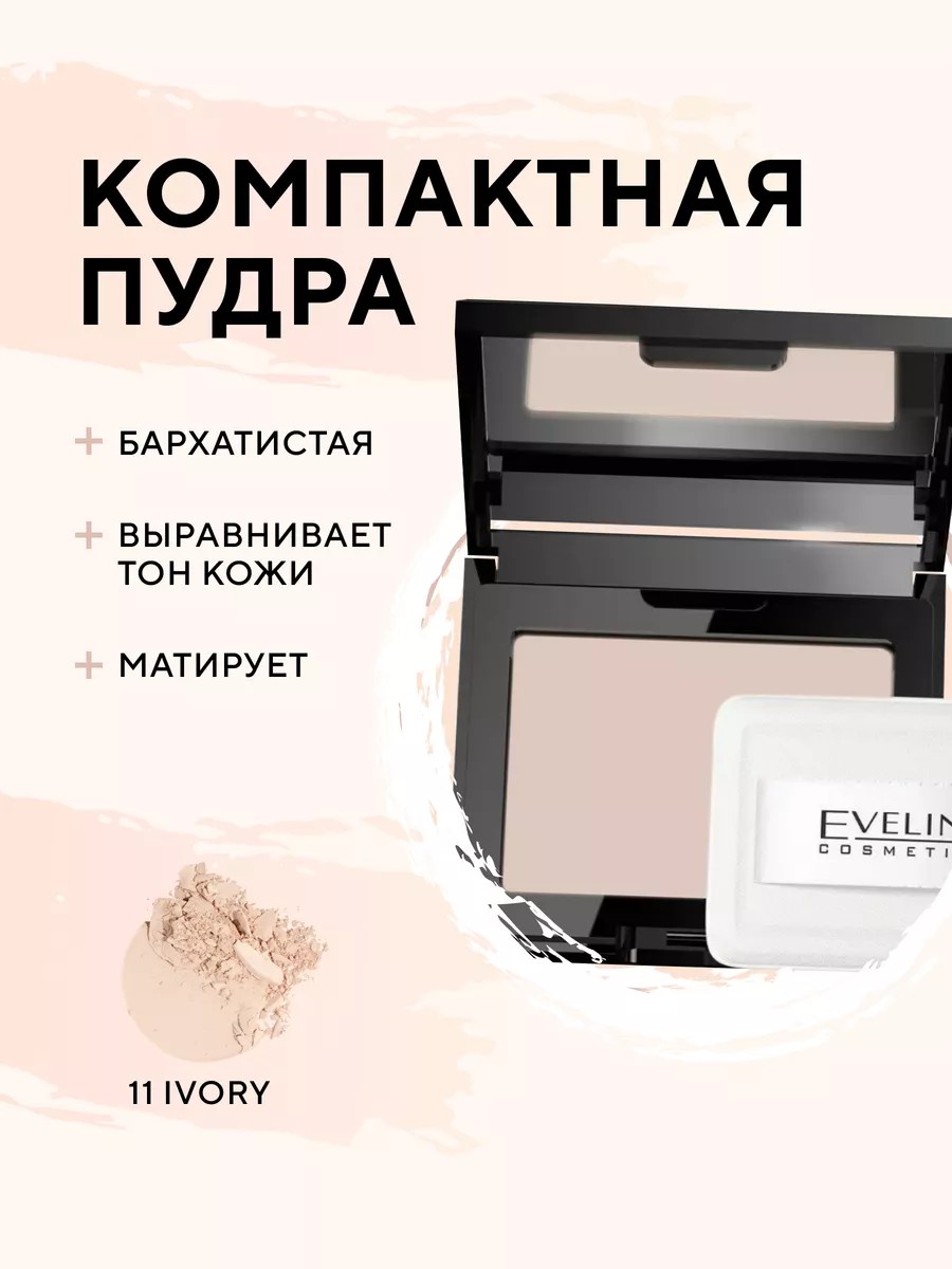 EVELINE Пудра компактная BEAUTY LINE бархатистая №11 Ivory, 9 гр