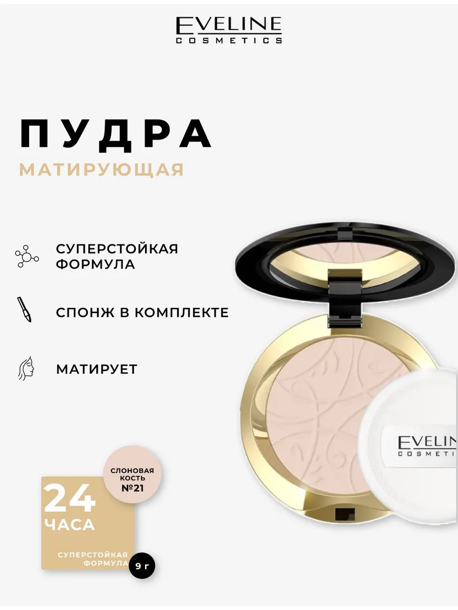 EVELINE Пудра компактная CELEBRITIES BEAUTY матирующая, тон №21
