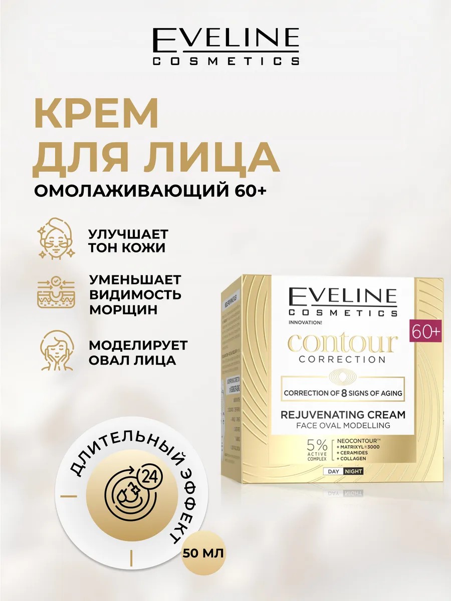Eveline Крем для лица CONTOUR CORRECTION омолаживающий 60+, 50 мл