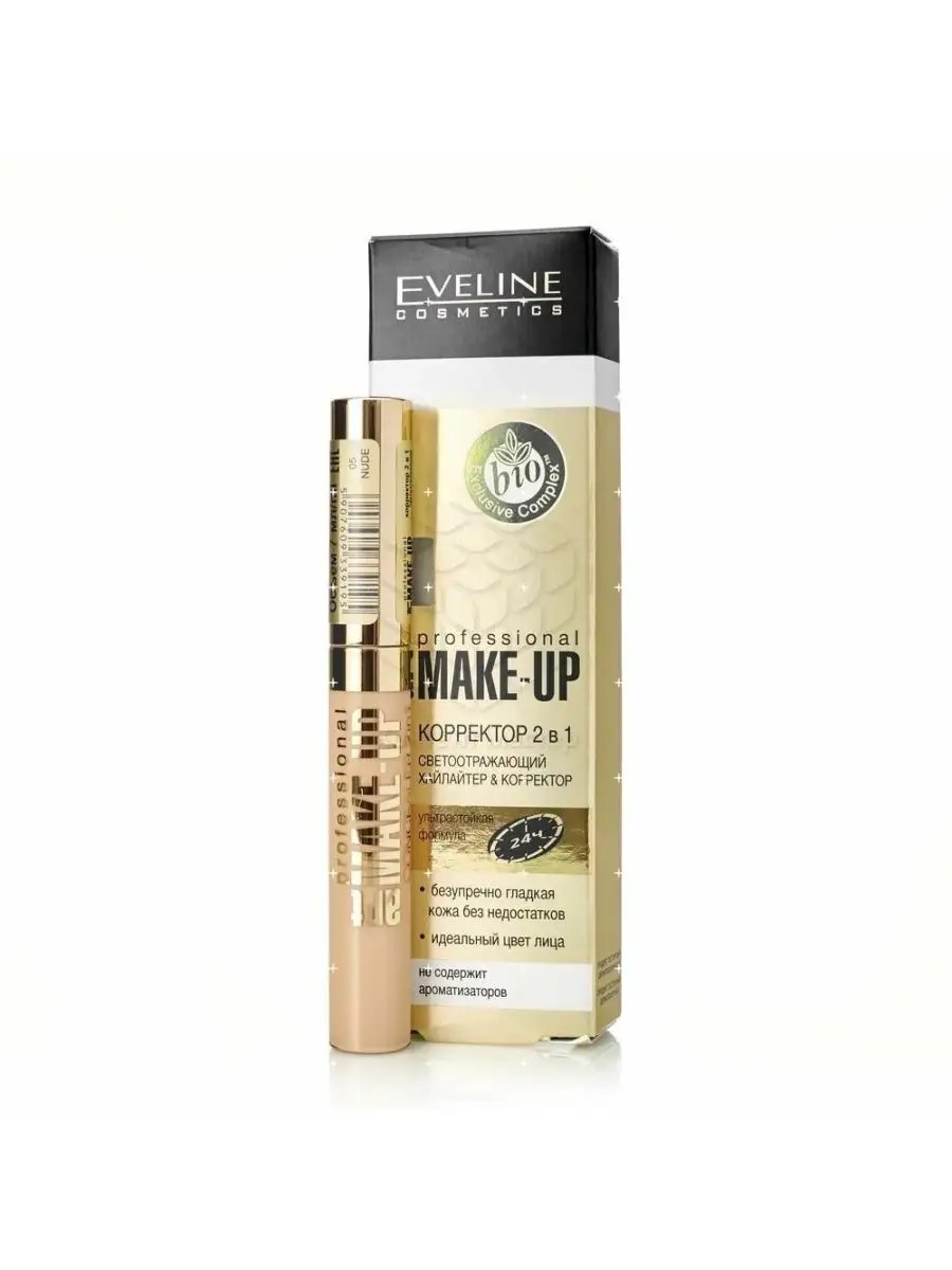 Eveline, ART Make Up Prof 2-in-1 Corrector, 05 Nude, 7 ml, 1 pc. This liquid corrector with an ultra-light texture and convenient applicator is designed for topical application. It provides flawless coverage, smoothes the micro-relief of the eye contour, reduces signs of fatigue, and adds expressiveness to the eyes. In seconds, the corrector will lighten dark circles under the eyes and easily conceal redness and other skin imperfections.