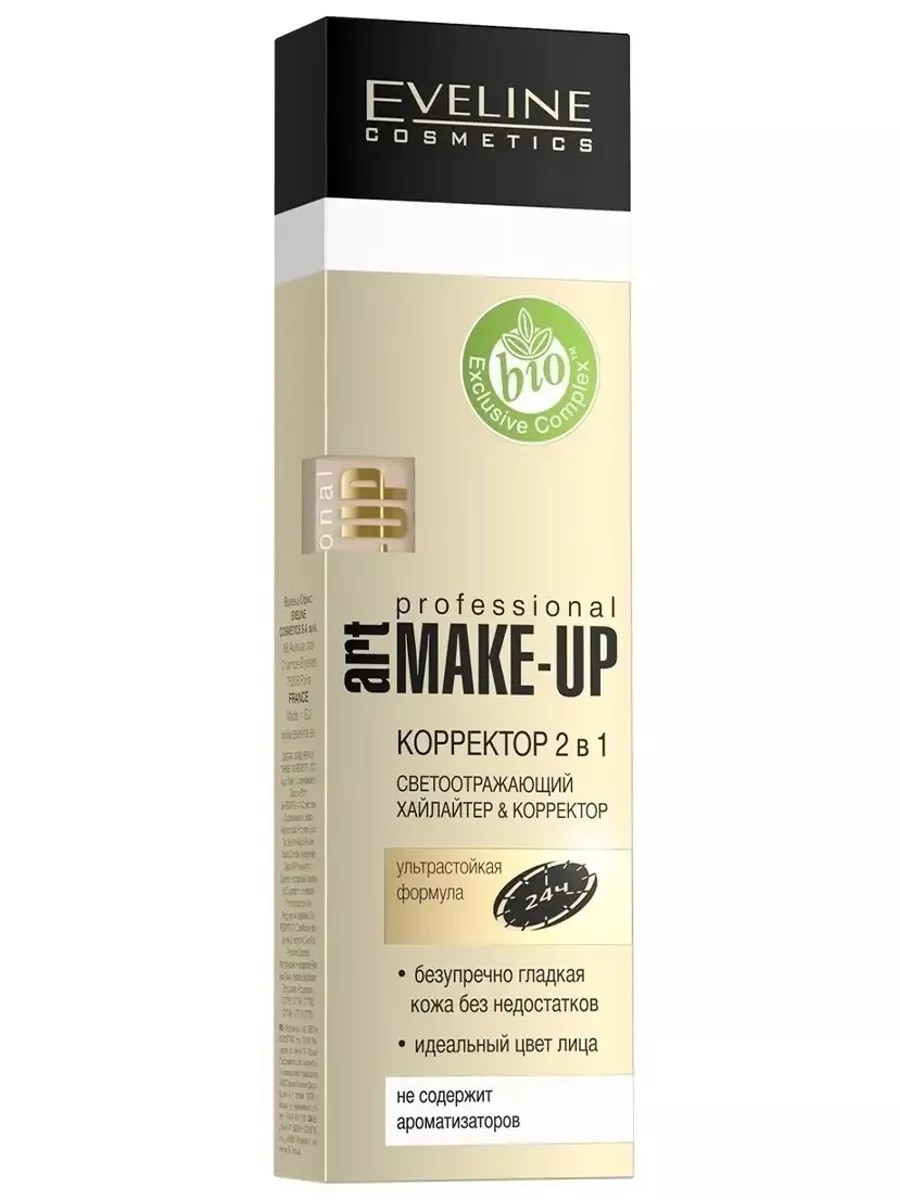 Eveline Art Professional Make-Up 08 Porcelain Liquid Corrector with an ultra-light texture and a convenient applicator is designed for localized application. It provides flawless coverage, smoothes the microrelief of the eye contour, reduces signs of fatigue, and adds expressiveness to the eyes. The corrector instantly brightens dark circles under the eyes, conceals redness and other skin imperfections. The innovative Long Lasting Effect formula contains mineral pigments that ensure easy application, a silky finish, and a perfect, natural skin tone. A UV filter protects against UV rays and negative environmental influences. The patented Exclusive Bio Complex formula contains high-quality natural ingredients. The corrector is fragrance-free and hypoallergenic. The convenient compact packaging allows you to take it with you for easy makeup touch-ups throughout the day. How to use: apply to problem areas of the skin, blend thoroughly.