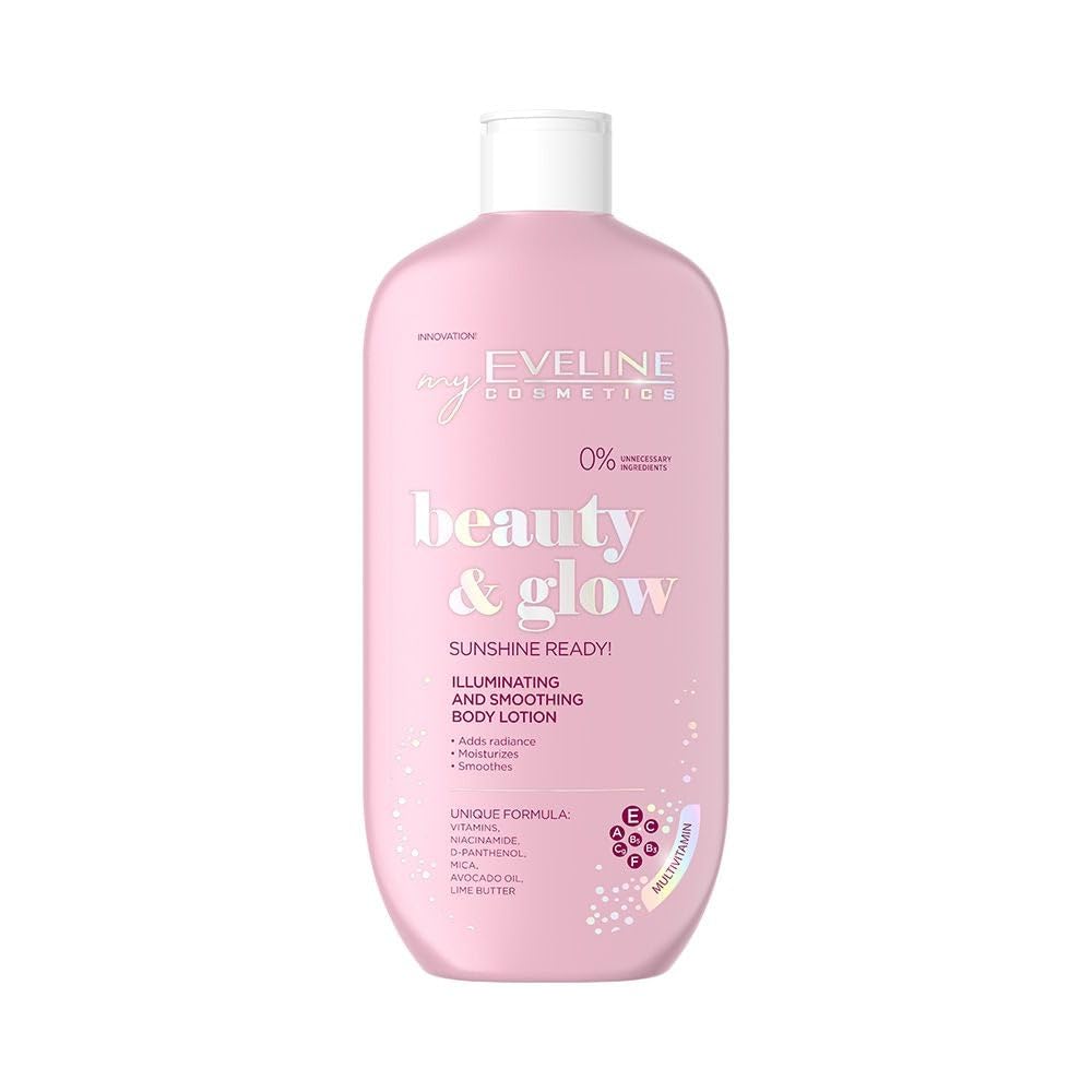 EVELINE COSMETICS Beauty & Glow Illuminating Body Lotion with Gold Particles Vitamins A E C B3 B5 & F for Deep Hydration and Nourishment