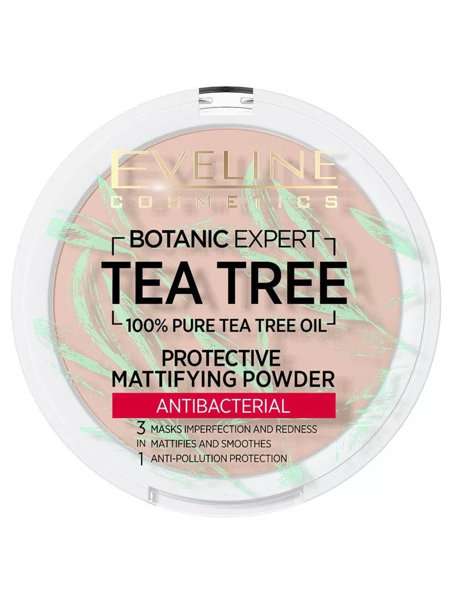 Eveline Cosmetics пудра для лица слоновая кость Botanic Expert, тон 002 ivory. Матирующая Антибактериальная пудра TEA TREE эффективно маскирует несовершенства кожи, фиксирует макияж, помогает абсорбировать излишки кожного жира и оказывает защитное, антибактериальное и противовоспалительное действие благодаря маслу чайного дерева, минеральной глине и экстракту зеленого чая в ее составе. Матирующая пудра Tea Tree не подчеркивает шелушения на коже, не забивает поры, а также позволяет коже дышать. пудра для лица эвелин подойдет для всех типов кожи, в особенности - жирной и комбинированной. Также позволяет создать матовый финиш без эффекта маски. пудра для лица для жирной кожи легко наносится и равномерно распределяется по коже, обеспечивая идеальное покрытие. Пудра для лица матирующая это идеальный инструмент для создания безупречного макияжа, который подчеркнет вашу красоту и уникальность. Декоративная косметика Эвелин пользуется популярностью среди визажистов, а также обычных женщин, стремящихся к идеальному макияжу. Пудра для лица компактная станет отличным дополнением в вашей косметичке, особенно если вы планируете создавать вечерние образы или дневной макияж. Пудра для лица матовая прекрасно маскирует несовершенства кожи, скрывает поры и мелкие морщинки, делая кожу матовой и бархатистой. Если вы хотите порадовать себя или своих близких на праздники, такие как Новый год, 8 Марта, День рождения или День святого Валентина подарите бьюти бокс. Вы можете собрать подарочный набор от Eveline и положить в него декоративную косметику Эвелин, например, тушь для ресниц, основу под макияж, тональный крем для лица, тени для век, гель для бровей, блеск для губ и, конечно же, пудра для лица матирующая компактная Эвелин. Такой подарок придется по душе маме, дочке, сестре, коллеге, подруге или любой другой женщине, которая заботится о своей красоте и хочет выглядеть безупречно каждый день. С Eveline Cosmetics пудра для макияжа вы сможете создать любой образ.
