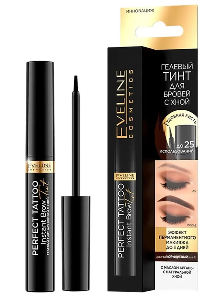 Гелевый тинт для бровей с хной Perfect Tattoo Коричневый от EVELINE — это идеальное средство для создания эффекта перманентного макияжа прямо у себя дома! Этот продукт прокрашивает не только волоски, но и кожу, подчёркивая форму бровей и делая их более выразительными.