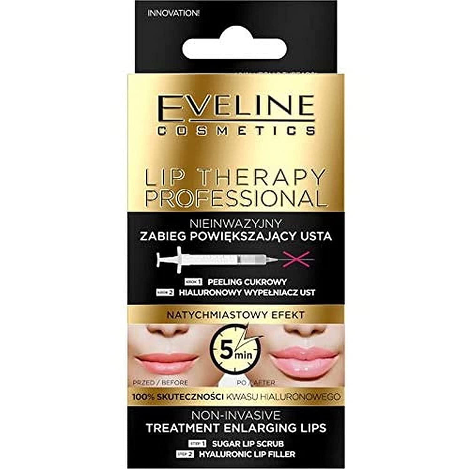 Eveline Cosmetics Lip Therapy Professional Non-Invasive Lip Enralging Treatment 2in1, Sugar Lip Scrub 7 ml ABD Hyaluronic Lip Filler 12 ml. Warnings For external use only.Avoid contact with the eyes, rinse thoroughly with water when they contact eye.Keep direct sunlight and intensive heat for the balance of children.