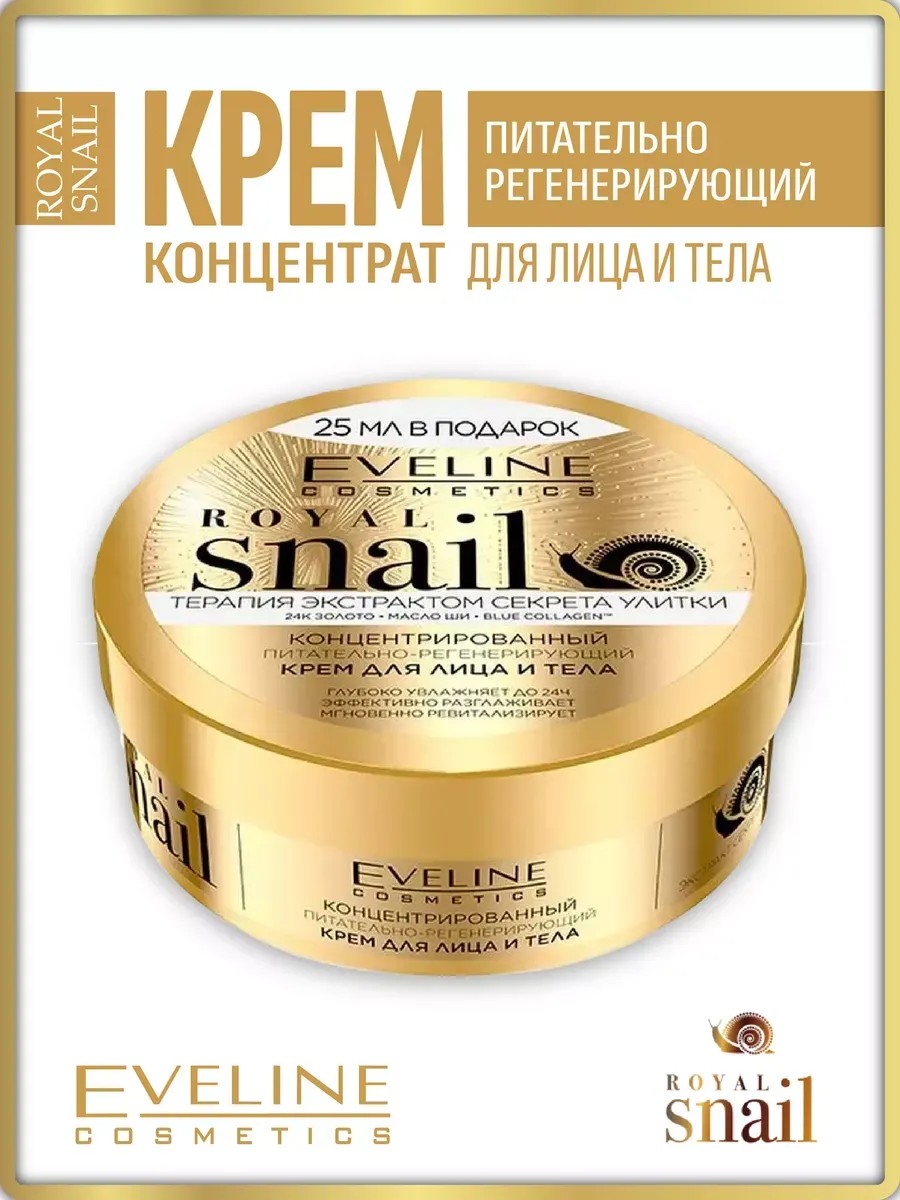 Концентрированный питательно-регенерирующий крем для лица и тела ROYAL SNAIL EVELINE - ваш надежный спутник в уходе за кожей каждый день. Независимо от типа кожи, этот крем обеспечивает комплексный уход без ощущения липкости или жирных следов.