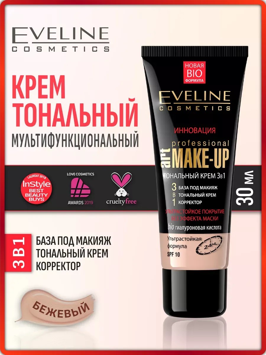 Уникальный тональный крем для лица 3в1 "Бежевый" от EVELINE Art Professional Make Up сочетает в себе три ключевых элемента: базу под макияж, тональную основу и корректор. Секрет его совершенства кроется в тающей текстуре и формуле с минеральными пигментами, которая обеспечивает ультраестественный и долговечный макияж.