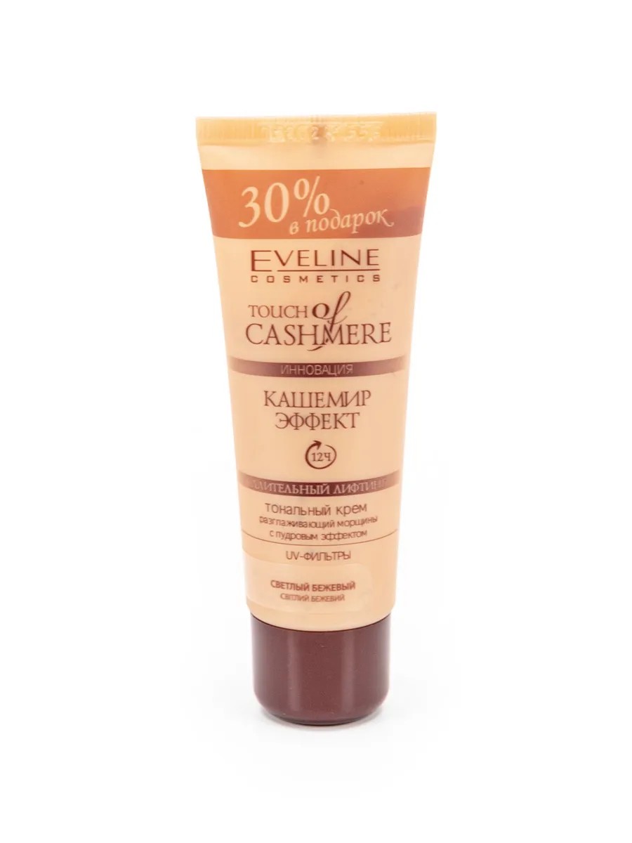 Гипоаллергенен. Рекомендуется для сверхчувствительной, склонной к аллергии кожи. Новинка от "Эвелин": тональный крем КАШЕМИР обладающий уникальной сверхлегкой пудровой формулой, тает на коже, делая ее бархатистой, как кашемир. Благодаря содержанию сферических полимеров и новой усовершенствованной формуле средство мгновенно и легко впитывается, не создавая искусственного "эффекта маски" на лице. Светоотражающие пигменты корректируют все недостатки кожи выравнивая цвет лица. Кожа становится матовой на весь день. Активный компонент разглаживающий морщины приостанавливает естественный процесс старения кожи, обеспечивая длительный эффект лифтинга. Витаминный комплекс (A, E, F, B5) регенерирует, увлажняет и смягчает эпидермис.