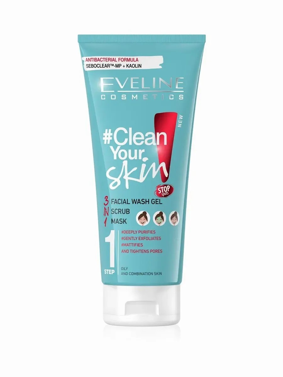 Eveline Cosmetics Гель для умывания+скраб+маска 3в1 Clean Your Skin 200мл