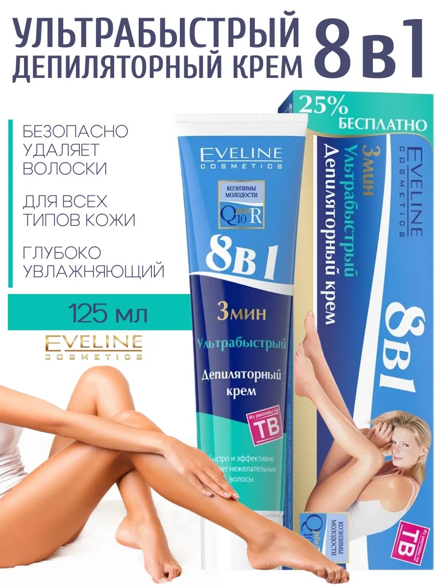 EVELINE Крем для депиляции ног и рук Ультрабыстрый 8в1, 125 мл