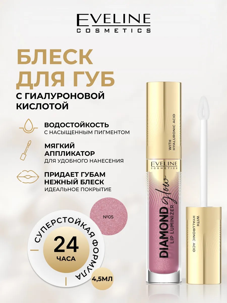 EVELINE Блеск для губ DIAMOND GLOW с гиалуроновой кислотой №05