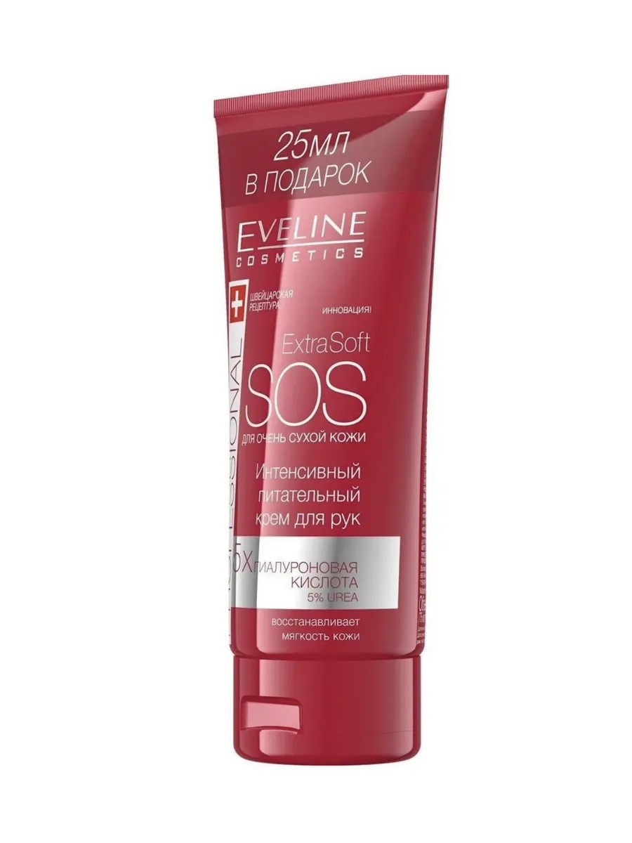 Питательный крем для рук Eveline EXTRA SOFT "SOS" 100 мл — интенсивный уход для очень сухой и потрескавшейся кожи. Благодаря активной формуле с пантенолом, глицерином и аллантоином, крем глубоко увлажняет, питает и моментально смягчает кожу, устраняя чувство стянутости и дискомфорта. Быстро впитывается, не оставляет липкости и жирного блеска. Идеален для ежедневного использования, особенно в холодное время года или при частом контакте с водой. Eveline EXTRA SOFT "SOS" — быстрая помощь и защита для ваших рук каждый день.