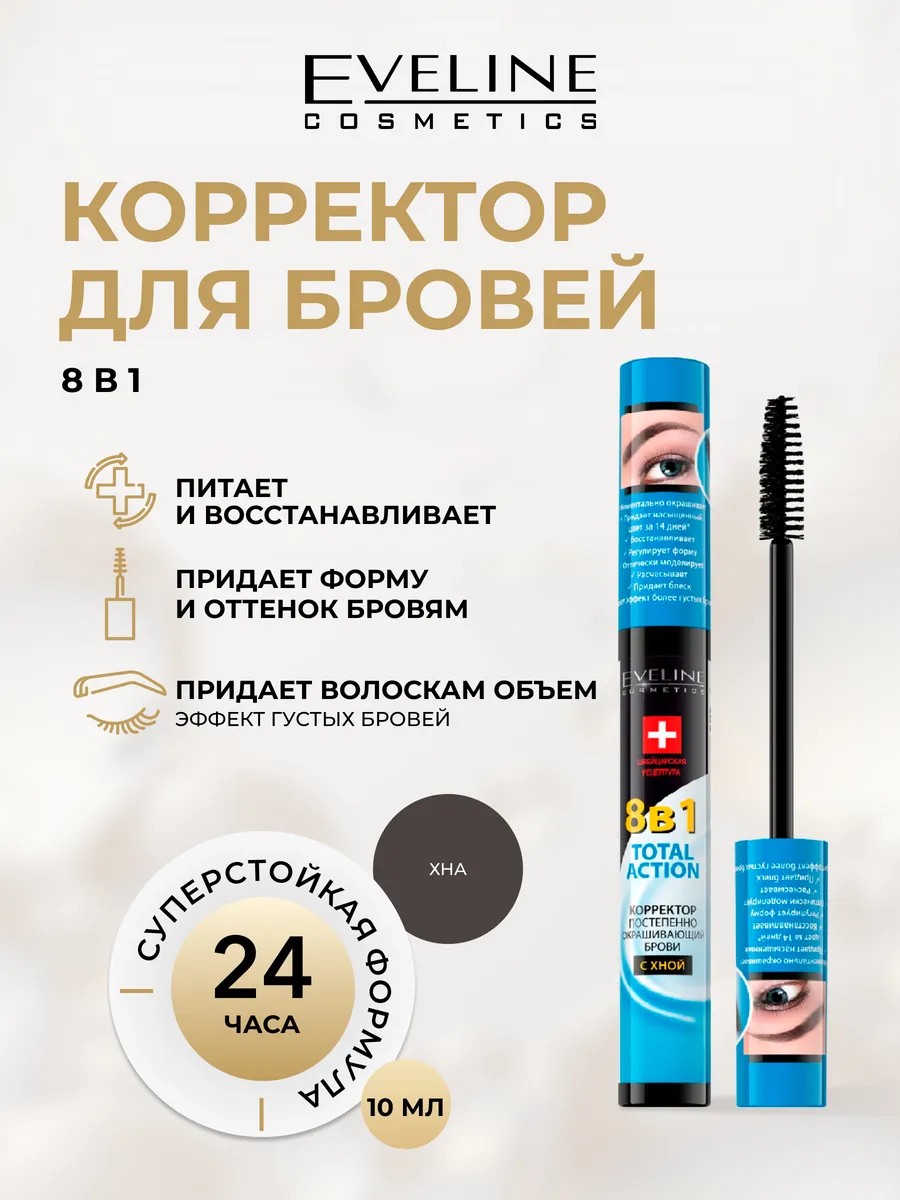 EVELINE Корректор для бровей EYEBROW CORRECTOR с хной 8в1, 9 мл