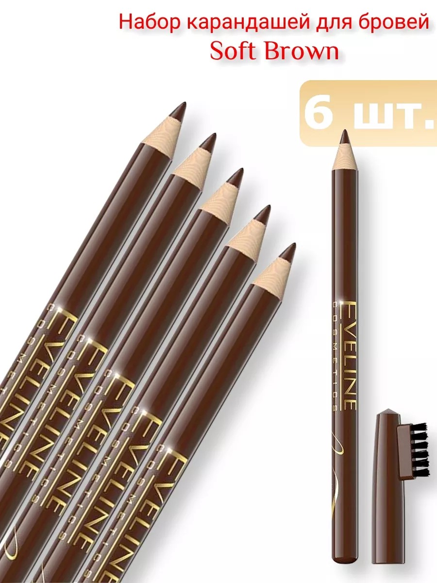 Eveline Контурный карандаш для бровей Eyebrow Pencil Soft Brown позволяет без особых усилий придать бровям желаемую форму и подчеркнуть красоту взгляда. В зависимости от силы нажима можно легко подчеркнуть линию бровей либо придать им модные графичные очертания. Благодаря мягкому грифелю карандаш легко прокрашивает пустоты между волосков и корректирует форму, не размазываясь и не осыпаясь. С помощью удобной эластичной щеточки на колпачке можно легко уложить непослушные волоски и избавиться от излишков продукта. Натуральные оттенки позволяют сделать макияж выразительным и естественным одновременно. Набор состоит из 6 карандашей для бровей.