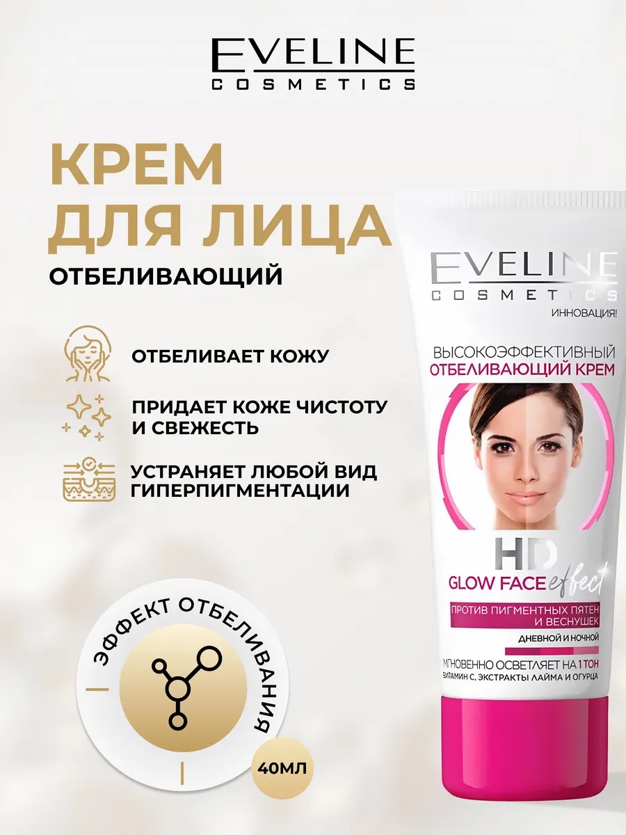 Eveline Крем для лица HD GLOW FACE EFFECT отбеливающий, 40 мл