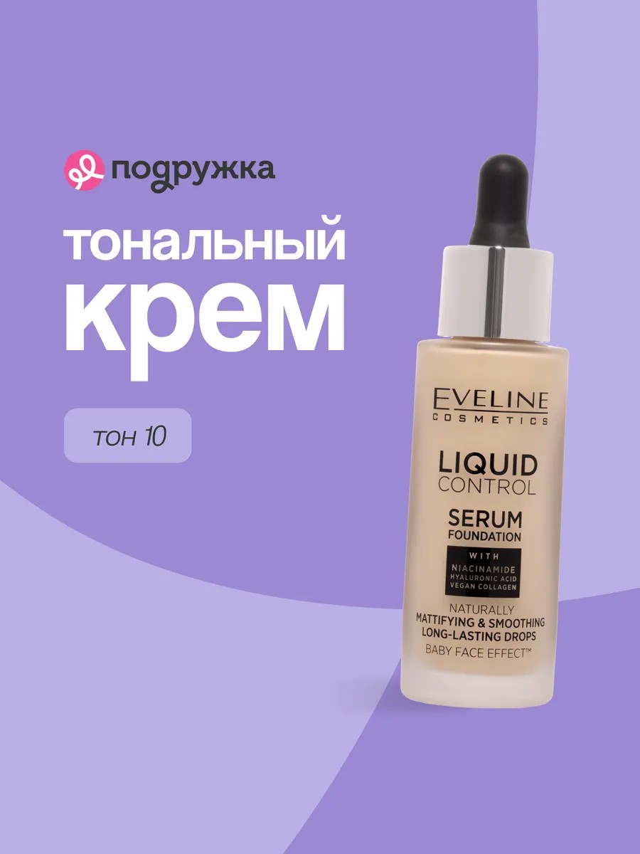EVELINE Крем тональный для лица LIQUID CONTROL тон 10