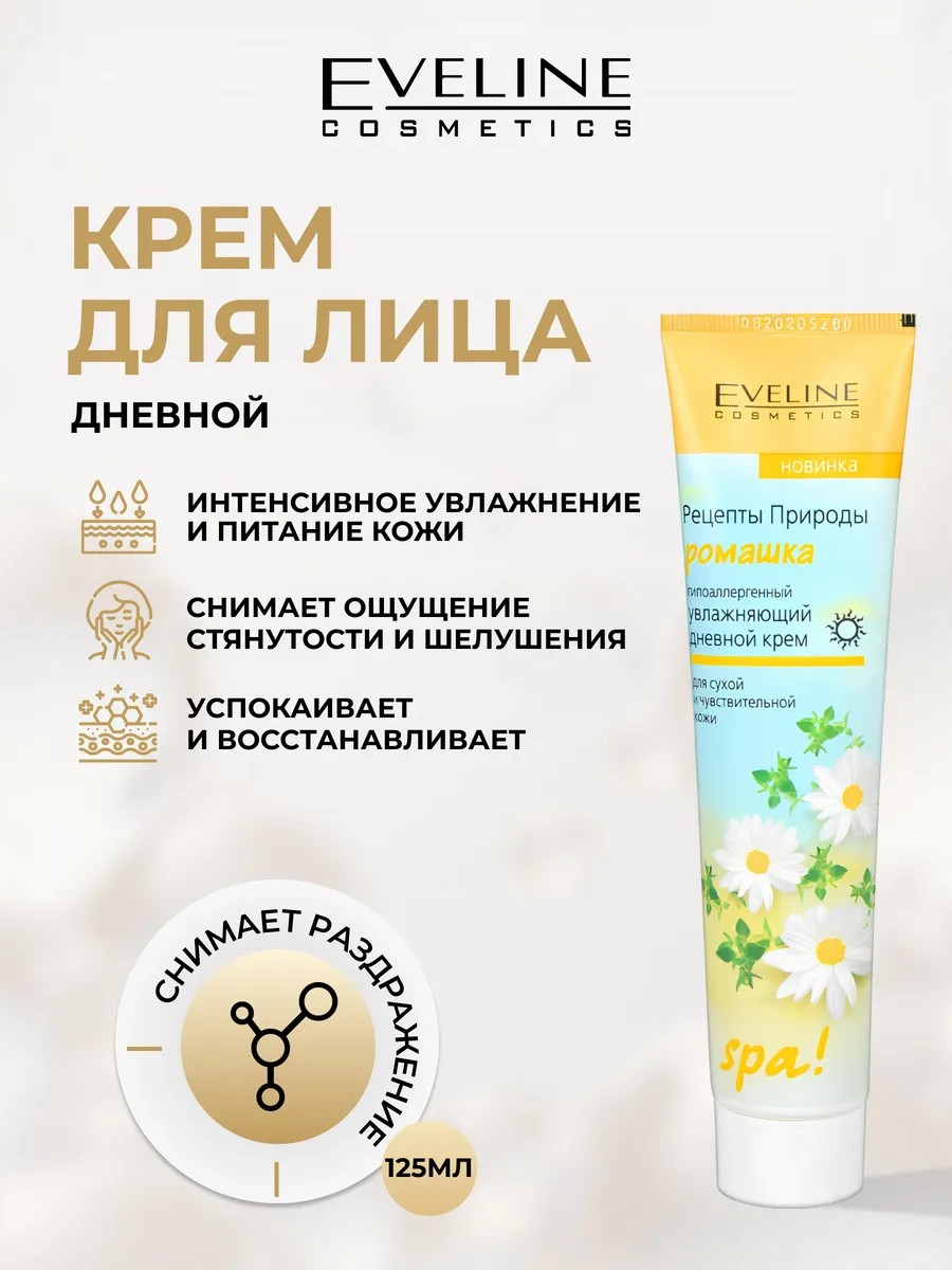 Eveline Крем для лица РЕЦЕПТЫ ПРИРОДЫ увлажняющий ромашка, 125 мл
