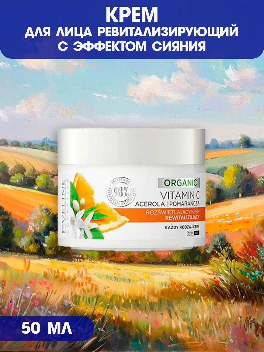 Крем для лица ревитализирующий с витамином С от EVELINE – это универсальное средство для ежедневного ухода за кожей. Его легкая текстура быстро впитывается, не оставляя ощущения липкости, и подходит для использования как днем, так и ночью. Формула крема обогащена витамином С, известным своими мощными антиоксидантными свойствами, которые помогают защитить кожу от негативного воздействия окружающей среды и сохранить ее молодость. Регулярное применение крема способствует восстановлению, питанию и придает коже сияющий вид. Подходит для всех типов кожи. Крем упакован в удобный тюбик объемом 50 мл, что делает его идеальным вариантом как для домашнего использования, так и для путешествий. Он станет отличным подарком для мамы, подруги или сестры по любому поводу, будь то 8 марта, день рождения или просто так.