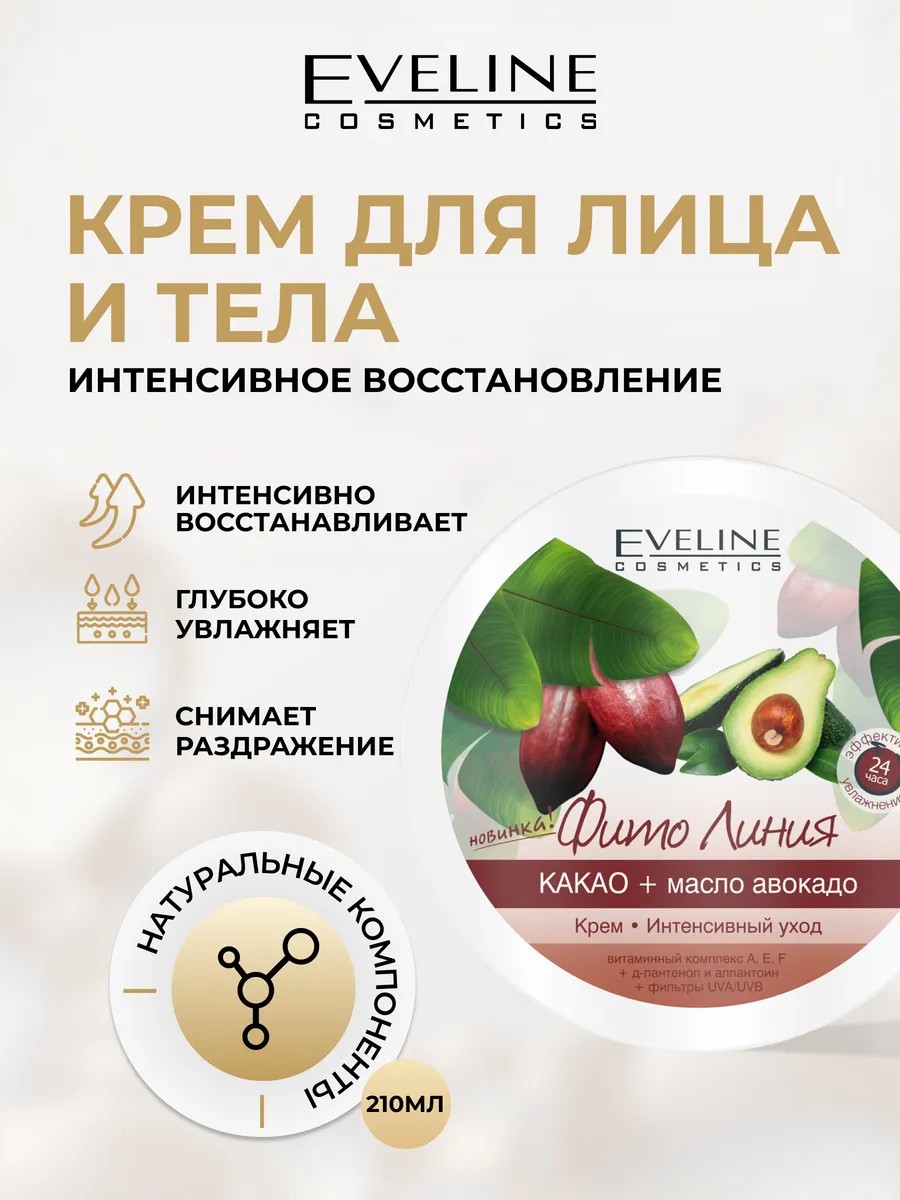 EVELINE Крем для лица и тела ФИТО ЛИНИЯ какао и масло авокадо