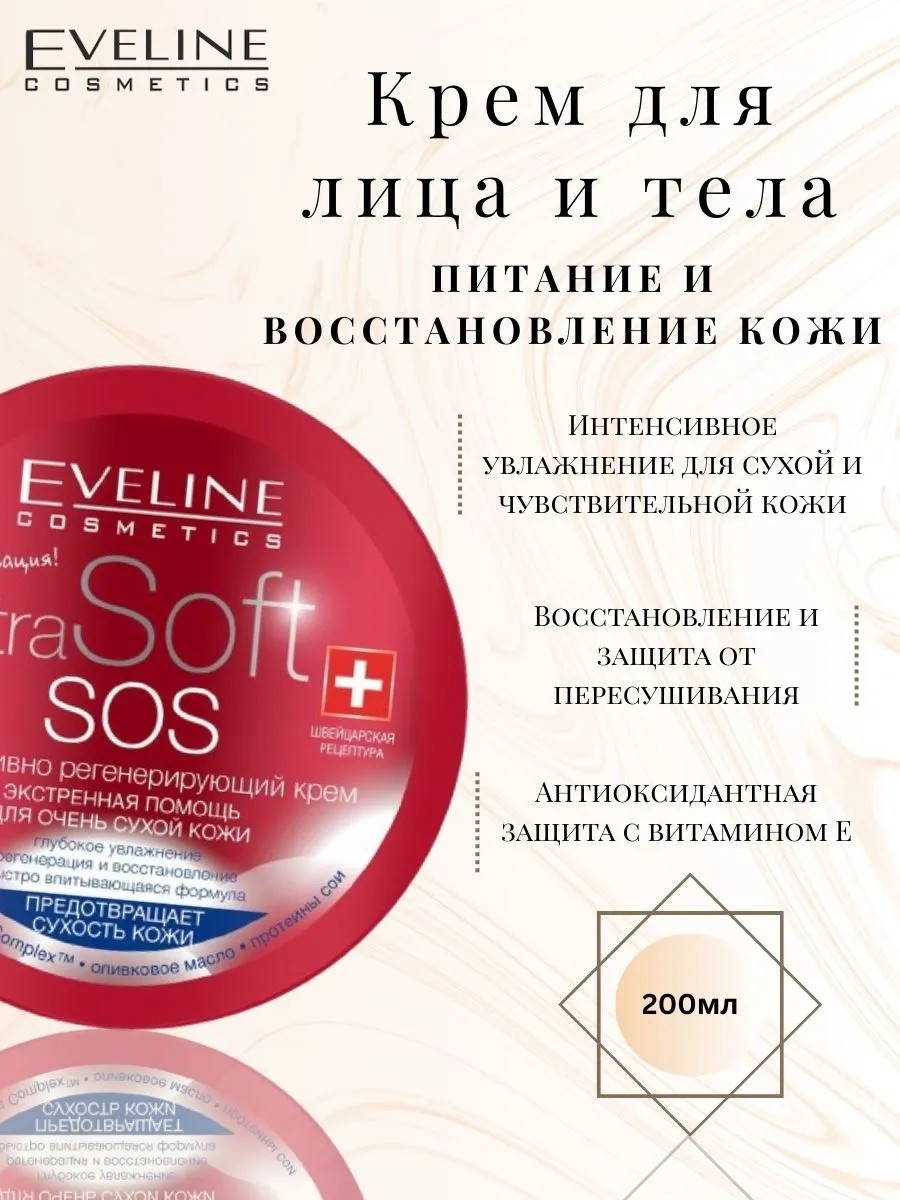 EVELINE Крем для лица и тела SOS Extra soft, 200мл