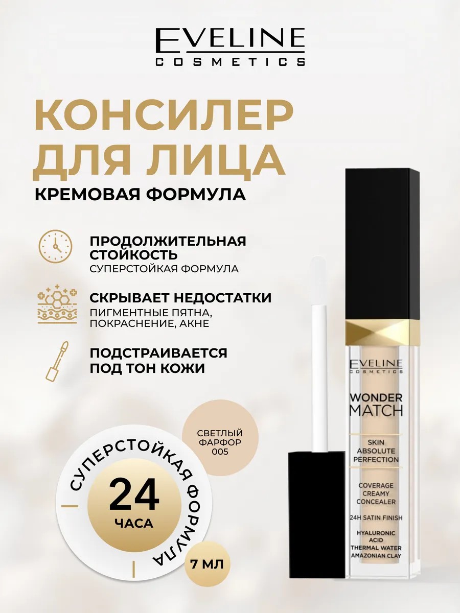 EVELINE Консилер для лица WONDER MATCH кремовый №005 Light Porcelain