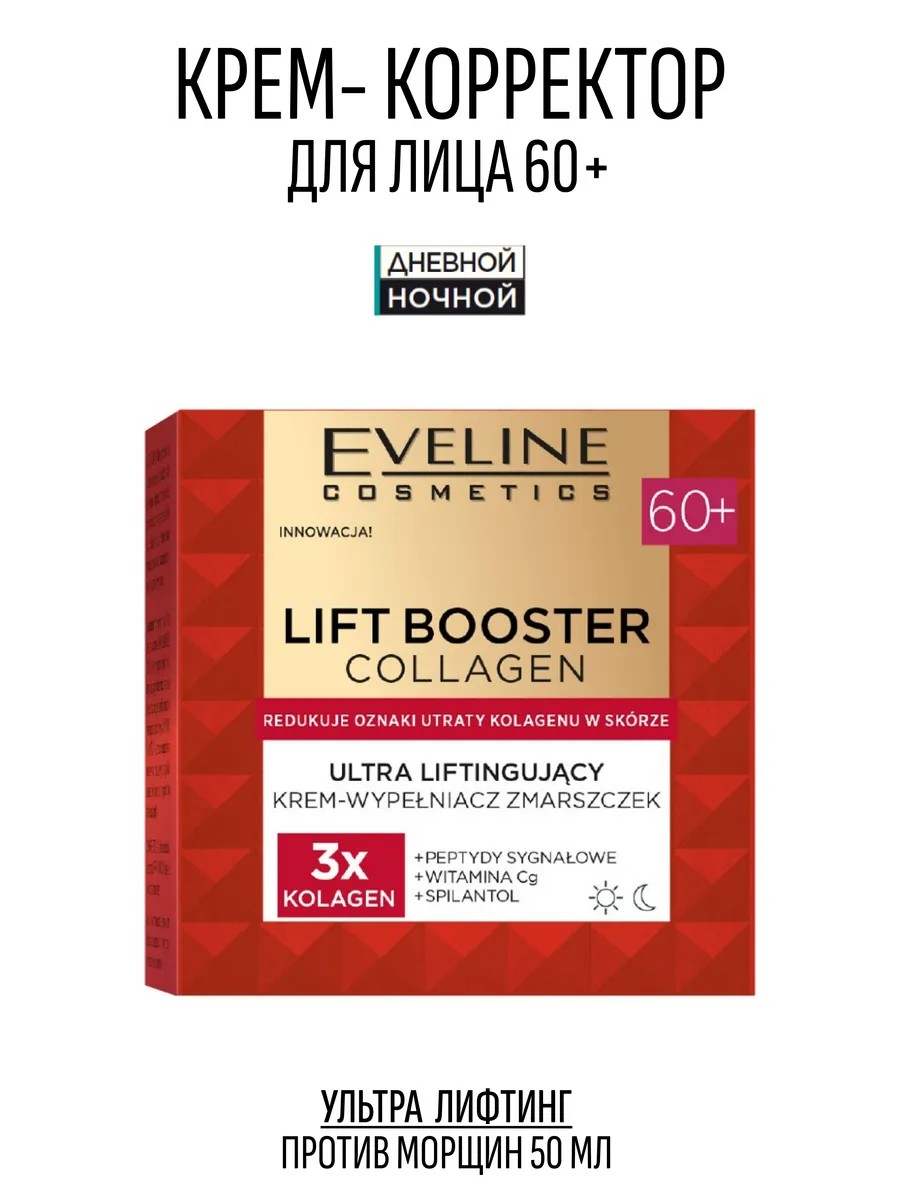 EVELINE Крем для лица 60+ против морщин Lift Booster Collagen 50 мл
