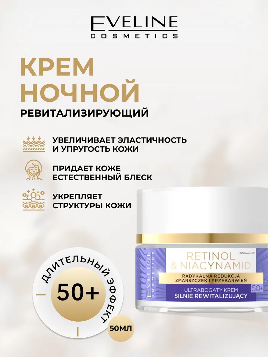 Eveline Крем для лица RETINOL&NIACYNAMID ревитализирующий ночной 50+