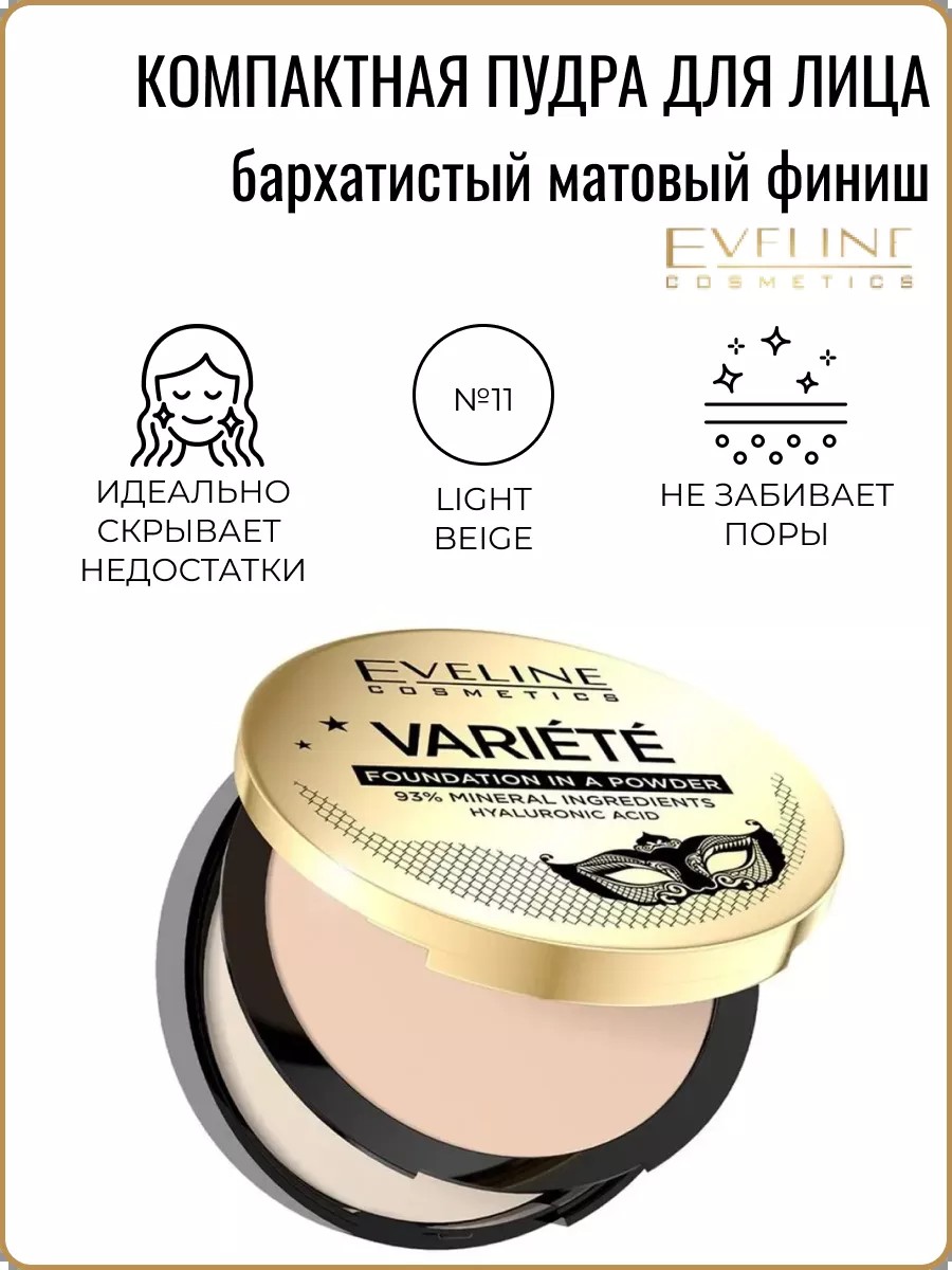 EVELINE Пудра для лица компактная минеральная VARIETE тон 11