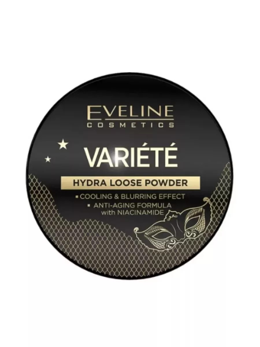 Eveline Loose Face Powder with Niacinamide. A MODERN, ULTRA-LIGHT LOOSE POWDER WITH AN INNOVATIVE COOLING EFFECT. The powder formula is enriched with water, providing skin with instant relaxation, hydration, and freshness that are felt from the first application. It also contains moisturizing HYALURONIC ACID and a modern ANTI-AGING complex, guaranteeing radiant skin, regeneration, refreshment, and wrinkle protection. The formula is enriched with NIACINAMIDE, which prevents the appearance of wrinkles and fine lines. The light consistency of this cosmetic blends perfectly with the skin, relaxes, seamlessly conceals imperfections, and adds a blue effect to makeup. The new innovative VARIÉTÉ powder sets makeup and leaves skin feeling exceptionally comfortable and fresh. The secret lies in its feather-light formula, which contains water. This makeup moisturizes the skin and skillfully conceals minor imperfections without emphasizing them. HYALURONIC ACID. Used in decorative cosmetics, it has hygroscopic properties – it perfectly binds water in the epidermis. It also has a smoothing effect, visibly improving skin firmness and elasticity. It is a biocompatible ingredient and does not cause irritation or allergies. NIACINAMIDE. A derivative of vitamin B3, widely used in cosmetology. This ingredient is very well tolerated even by sensitive skin. It has a soothing and moisturizing effect, strengthens the protective barrier, and has antioxidant and anti-inflammatory properties. REJUVENATING COMPLEX. Provides sufficient hydration, smoothes and corrects fine lines and wrinkles.