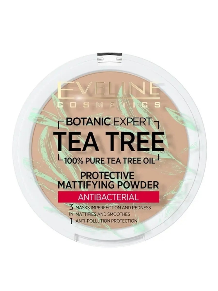 BOTANIC EXPERT TEA TREE Mattifying antibacterial face powder 9 g effectively conceals skin imperfections, sets makeup, helps absorb excess sebum and has a protective, antibacterial and anti-inflammatory effect thanks to tea tree oil, mineral clay and green tea extract in its composition. Tea Tree powder does not emphasize flaking on the skin, does not clog pores, and also allows the skin to breathe. The product is suitable for all skin types, especially oily and combination skin. - Effectively conceals imperfections. - Absorbs excess sebum. - Antibacterial action. - Protects from the negative effects of the environment. - Does not emphasize flaking. - Allows the skin to breathe. How to use: Apply with a powder puff or a brush. Ingredients: alc, Illite, Titanium Dioxide, Zinc Oxide, Paraffinum Liquidum, Ethylhexyl Hydroxystearate, Melaleuca Alternifolia Leaf Oil, Phenoxyethanol, Ethylhexylglycerin, Tocopherol, Helianthus Annuus Seed Oil, Camellia Sinensis Leaf Extract. +/- CI 77491, CI 77492, CI 77499.