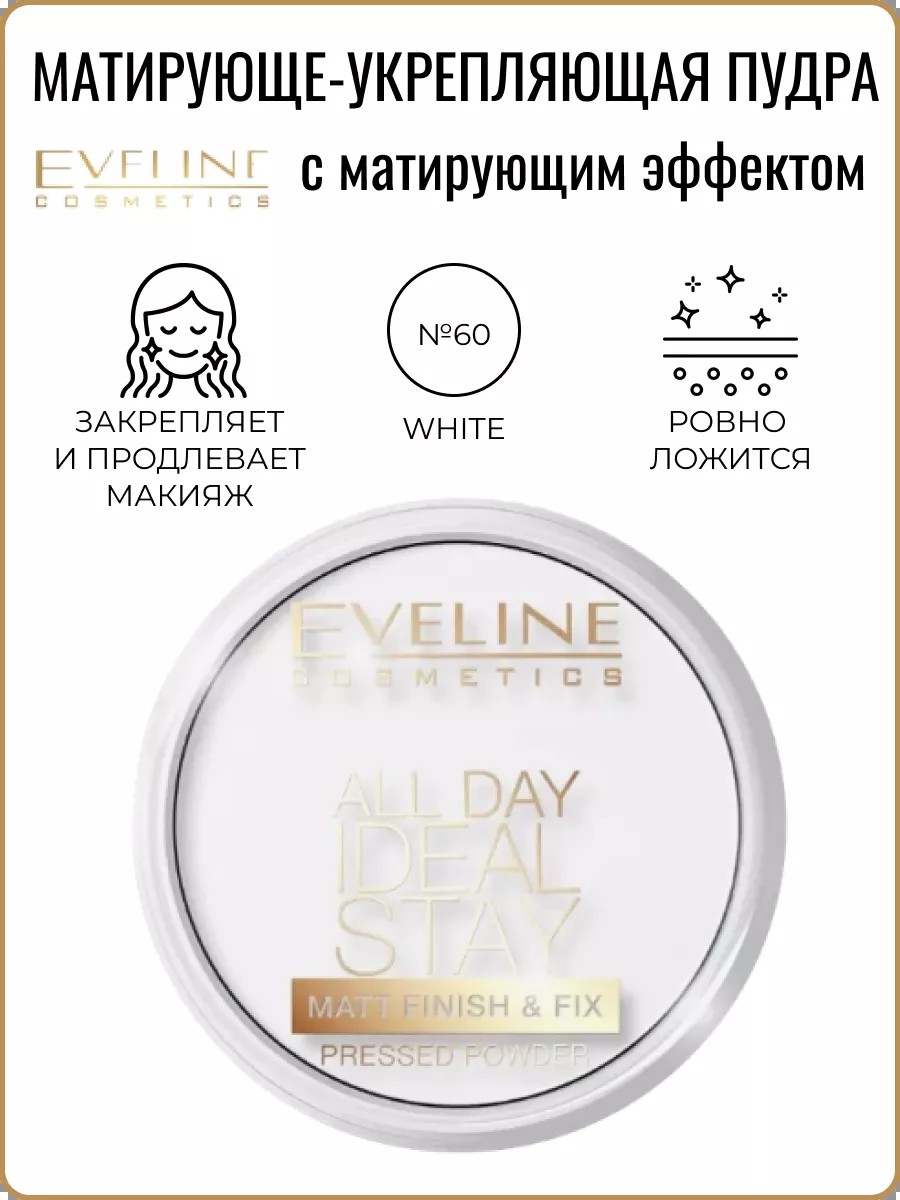EVELINE Пудра для лица матирующая прозрачная ALL DAY IDEAL STAY