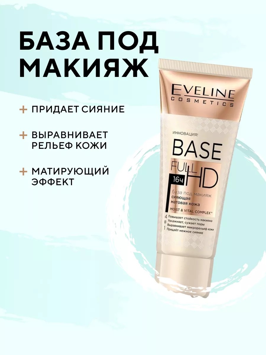 Eveline База под макияж FULL HD матирующая 4 в 1, 30 мл