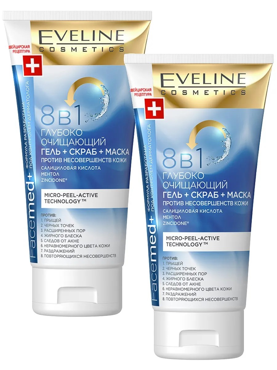 EVELINE Гель глуб.очищ.+скраб+маска 8в1 Facemed+ 150мл 2шт