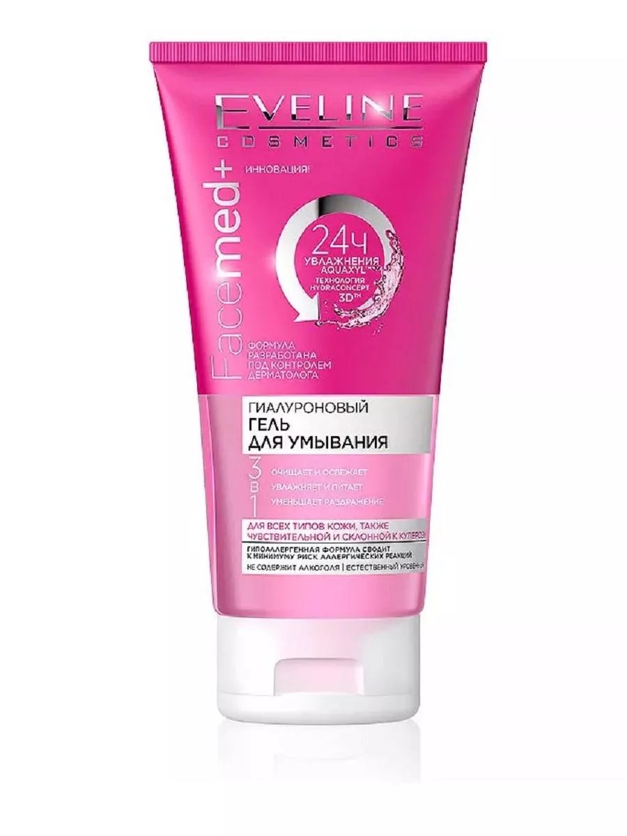 EVELINE Гель для умывания гиалуроновый 3в1 серии FACEMED+, 150мл