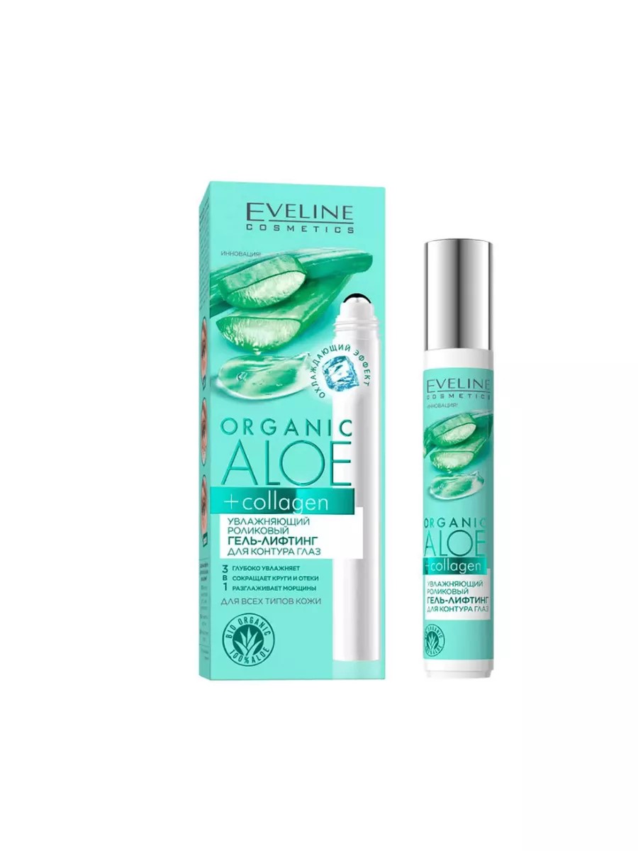 Eveline Eye Contour Lifting Gel, 15 ml. The active ingredients of the lifting gel work in 4 directions: 48-HOUR MOISTURIZING: ALOE HYDRA DEEP SYSTEM maintains optimal hydration levels in the deepest layers of the epidermis. REDUCING DARK CIRCLES AND SWELLING: ADIPOLESS firms and visibly improves the skin around the eyes. Caffeine improves microcirculation, reducing signs of fatigue. CYTOBIOL LUMIN-EYE significantly reduces dark circles and puffiness under the eyes, strengthening capillaries. REDUCING WRINKLES AND FINE LINES: Acacia Collagen and Wakame bioenzyme strengthen the epidermis, effectively smoothing and preventing the appearance of wrinkles and crow's feet. bioPullulan visibly tightens, stimulates collagen production, and provides a powerful antioxidant effect. A complex of vitamins A, E, and F restore skin firmness and elasticity. Coconut oil intensely nourishes and smoothes. MICROBIOME PROTECTION: A complex of pre- and probiotics nourishes the skin's unique protective layer, strengthens the epidermis's immunity, and improves complexion.