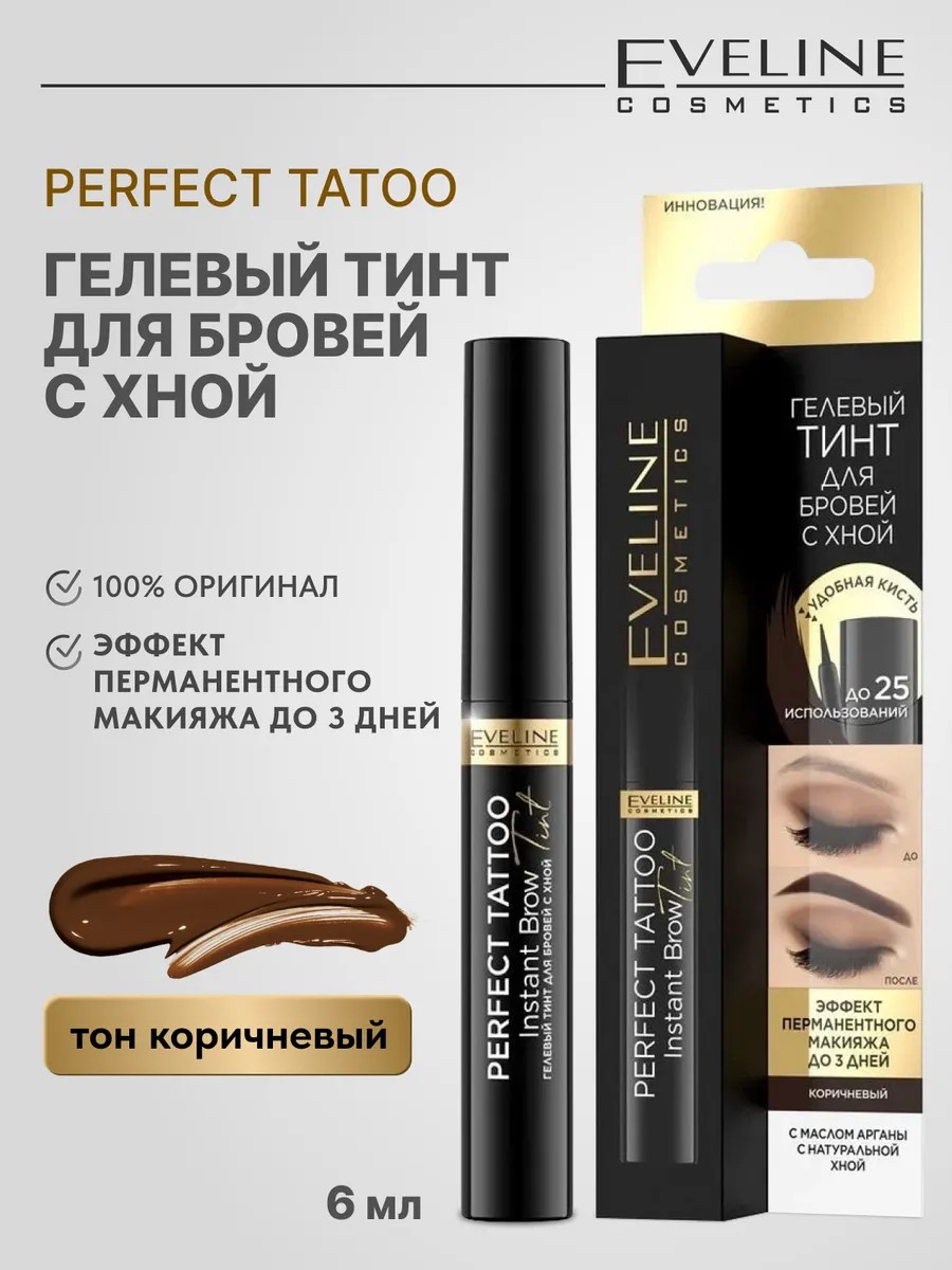 Гелевый тинт для бровей с хной Рerfect Tattoo от Eveline коричневого цвета.