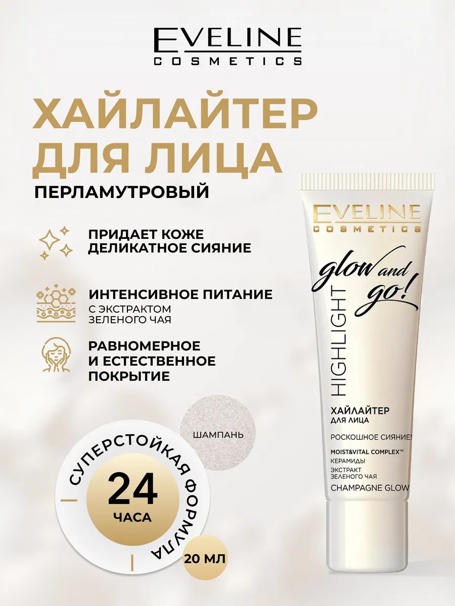 EVELINE Хайлайтер для лица GLOW AND GO! перламутр CHAMPAGNE GLOW