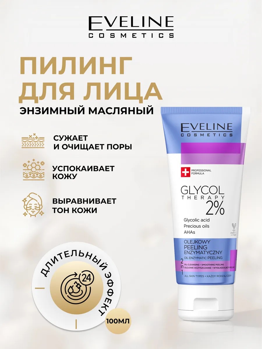 Eveline Пилинг для лица GLYCOL THERAPY энзимный масляный 2в1, 100 мл
