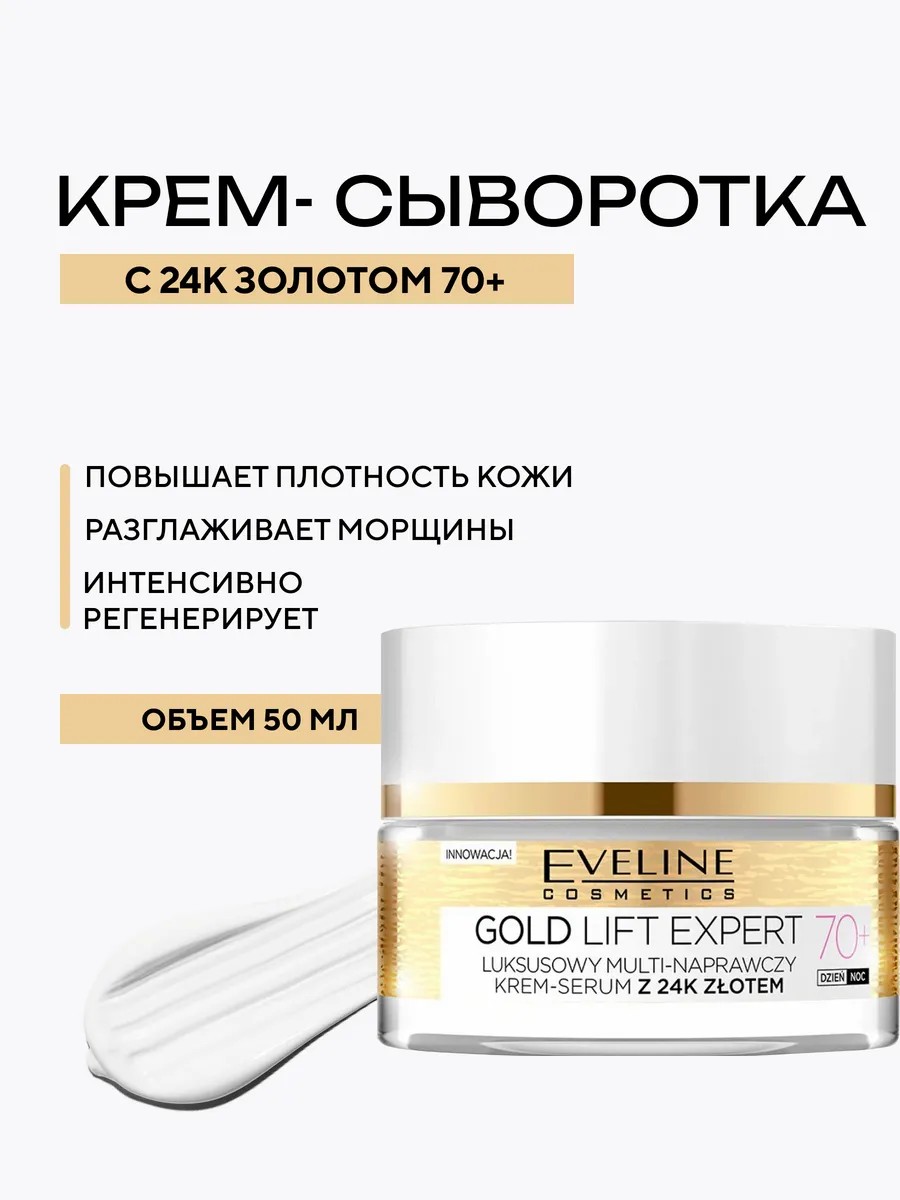 Eveline Крем-сыворотка GOLD LIFT EXPERT восстанавливающий 70+, 50 мл