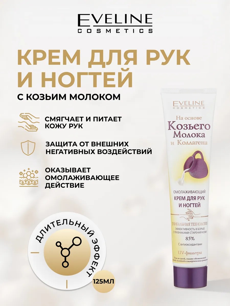 EVELINE Крем для рук и ногтей Козье Молоко увлажняющий, 125 мл