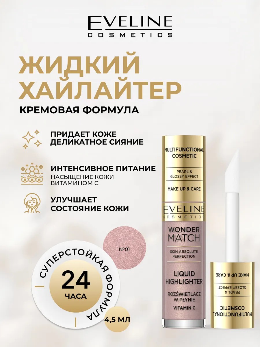 EVELINE Хайлайтер для лица WONDER MATCH кремовый тон №01, 4.5 мл