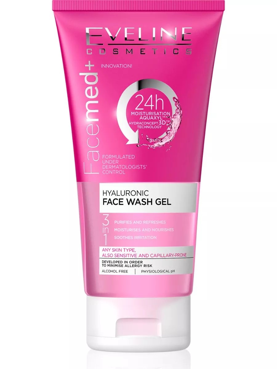EVELINE Гиалуроновый гель для умывания 3в1 серии FACEMED+, 150мл