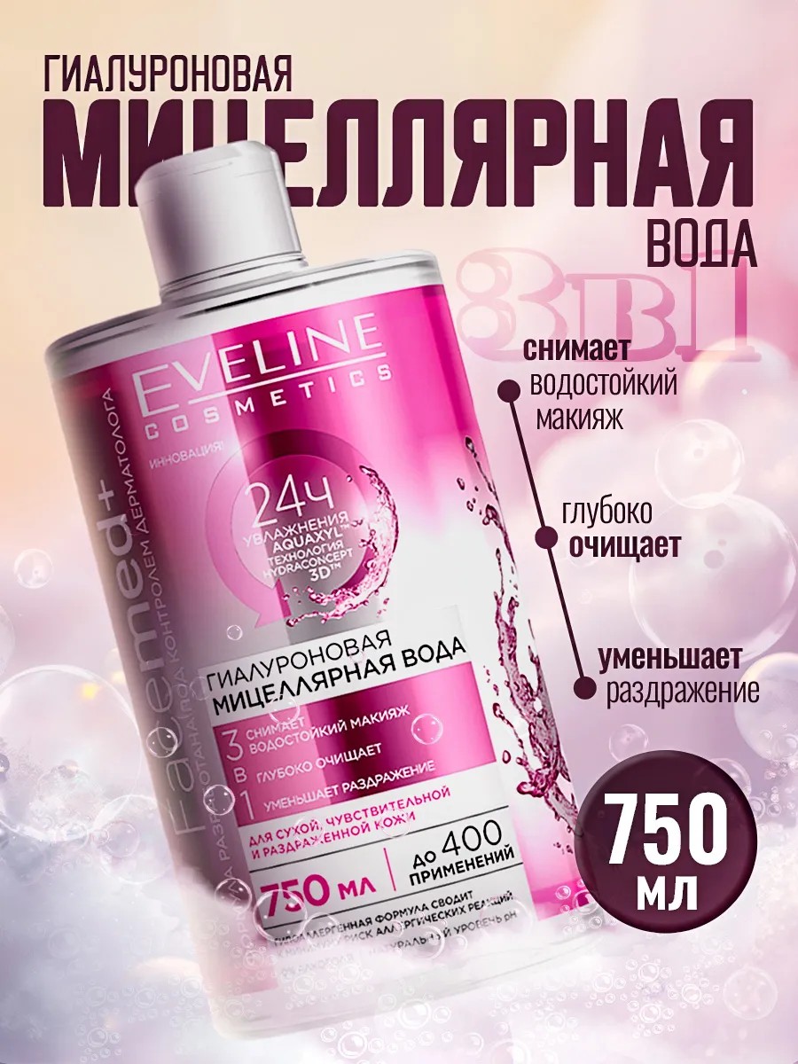 EVELINE Гиалуроновая мицеллярная вода Facemed+ 3в1, 750 мл