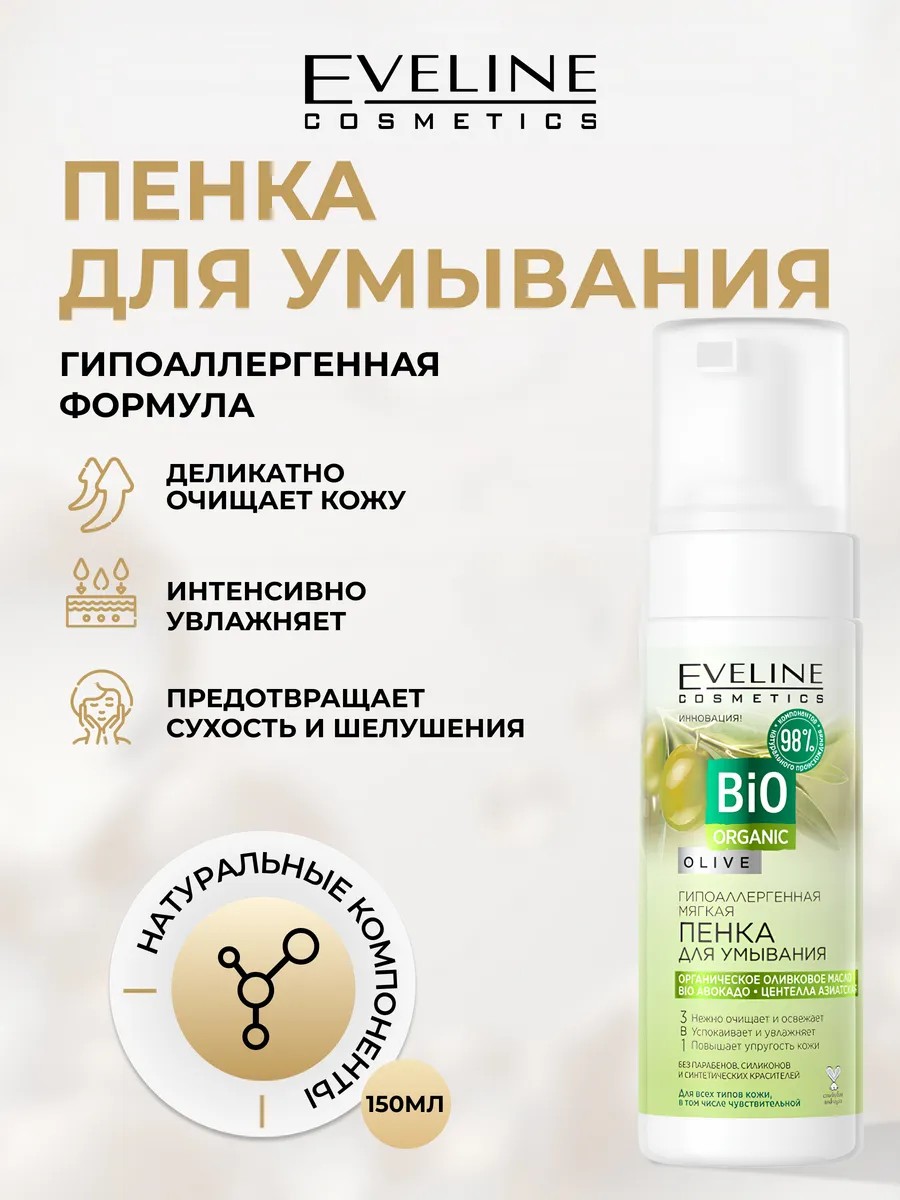 EVELINE Гипоаллергенная мягкая пенка для умывания bio organic, 150мл