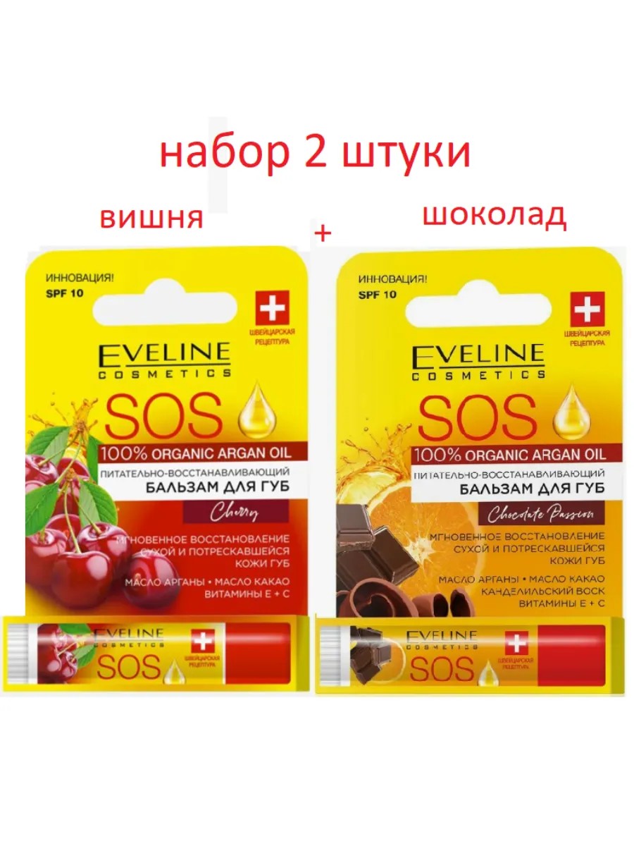 EVELINE Бальзам для губ ВИШНЯ+ШОКОЛАД ARGAN OIL SOS - 2 штуки