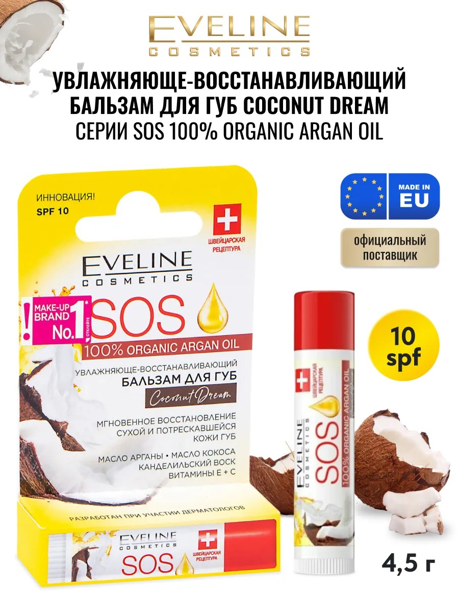 EVELINE Бальзам для губ SOS Кокос восстанавливающий SPF10, 4.5г